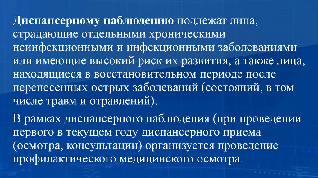 Диспансерному наблюдению подлежат лица,страдающие отдельными хроническими