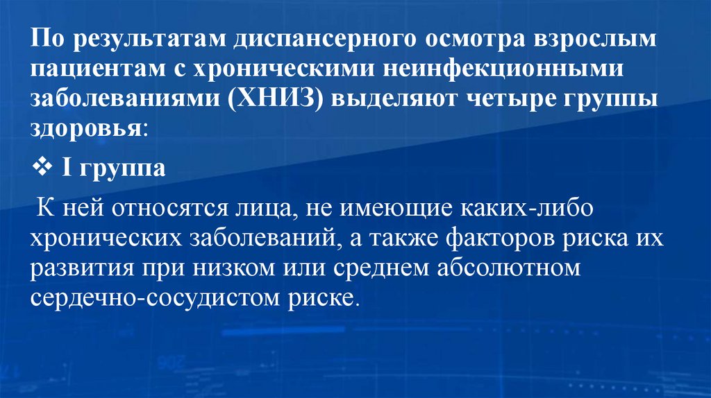 заболеваниями (ХНИЗ) выделяют четыре группы