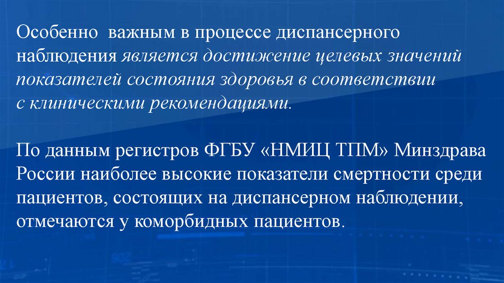 Особенно важным в процессе диспансерногонаблюдения является достижение целевых значений