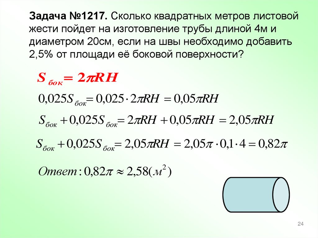 Задача №1217. Сколько квадратных метров листовойжести пойдет на изготовление трубы длиной 4м и