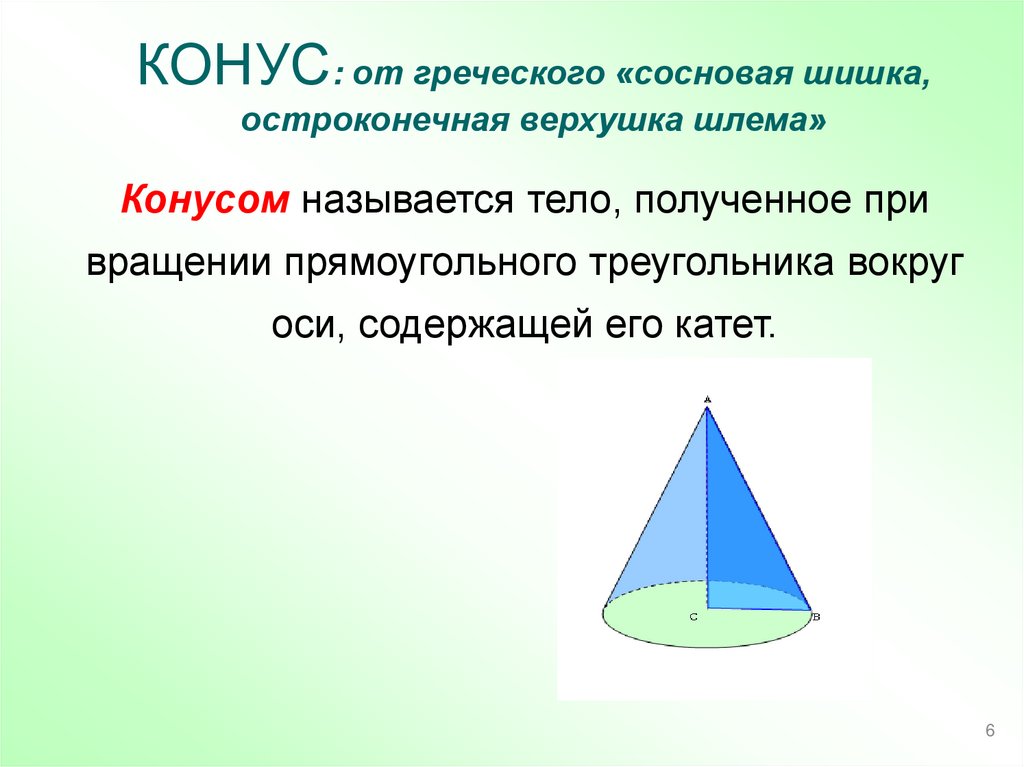 КОНУС: от греческого «сосновая шишка,остроконечная верхушка шлема»