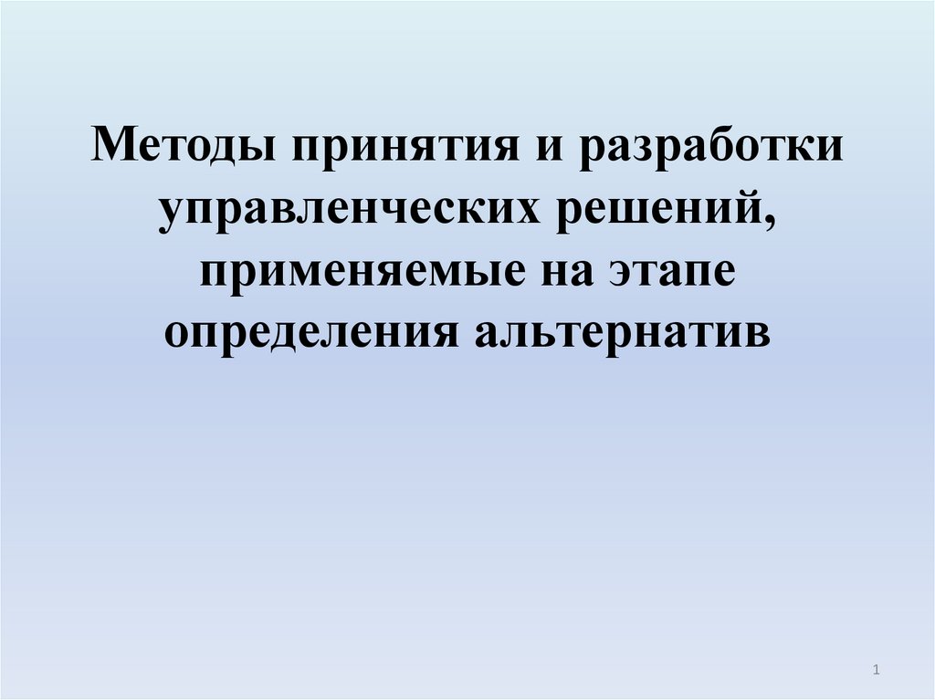1. Методы принятия и разработки управленческих решений, применяемые на этапе определения альтернатив