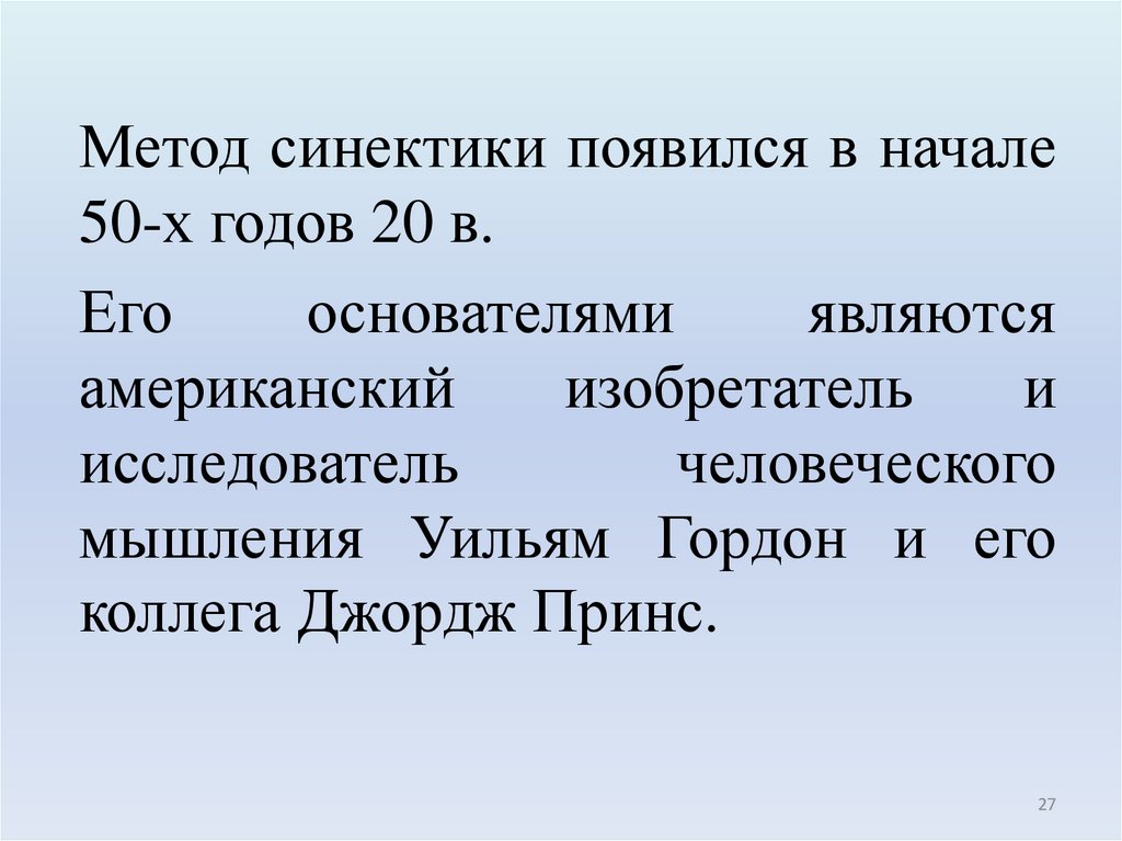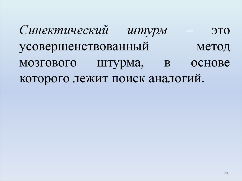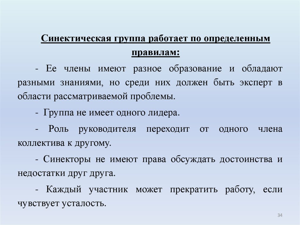 • Поскольку метод синектики применяется дляколлективного поиска идей, для его реализации требуется