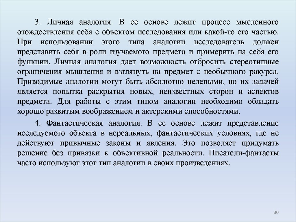 3. Личная аналогия. В ее основе лежит процесс мысленногоотождествления себя с объектом исследования или какой-то его частью.