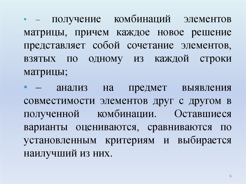 получение комбинаций элементовматрицы, причем каждое новое решение