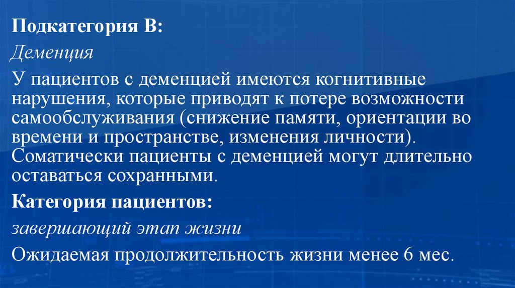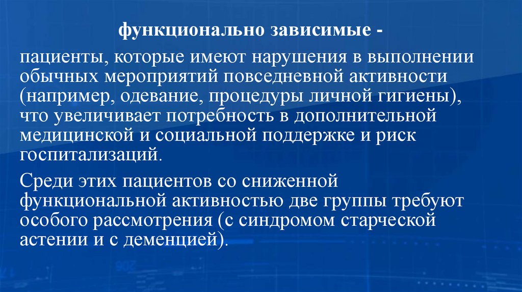 функционально зависимые пациенты, которые имеют нарушения в выполненииобычных мероприятий повседневной активности