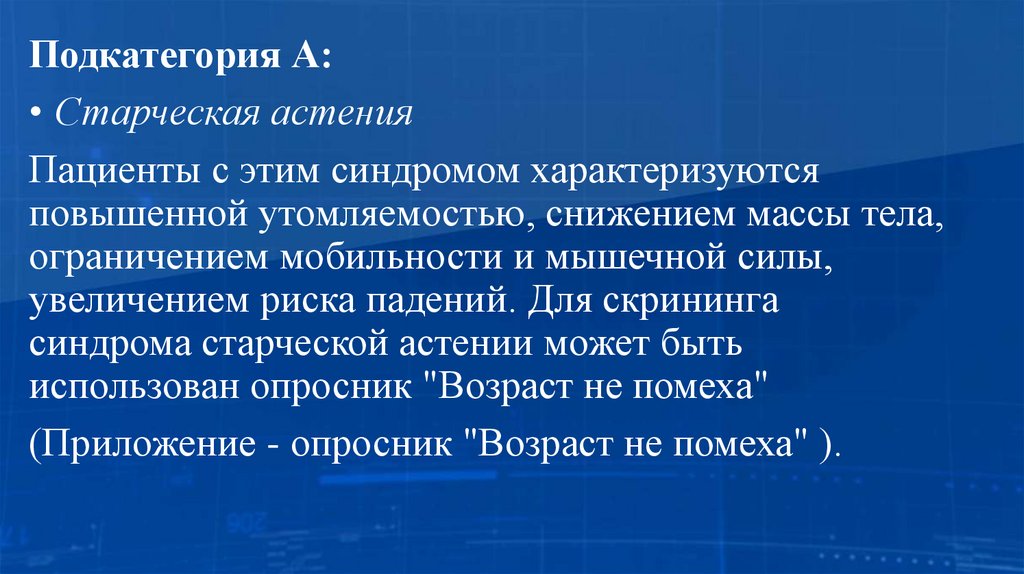 13. Опросник «Возраст не помеха» для скрининга синдрома старческой астении
