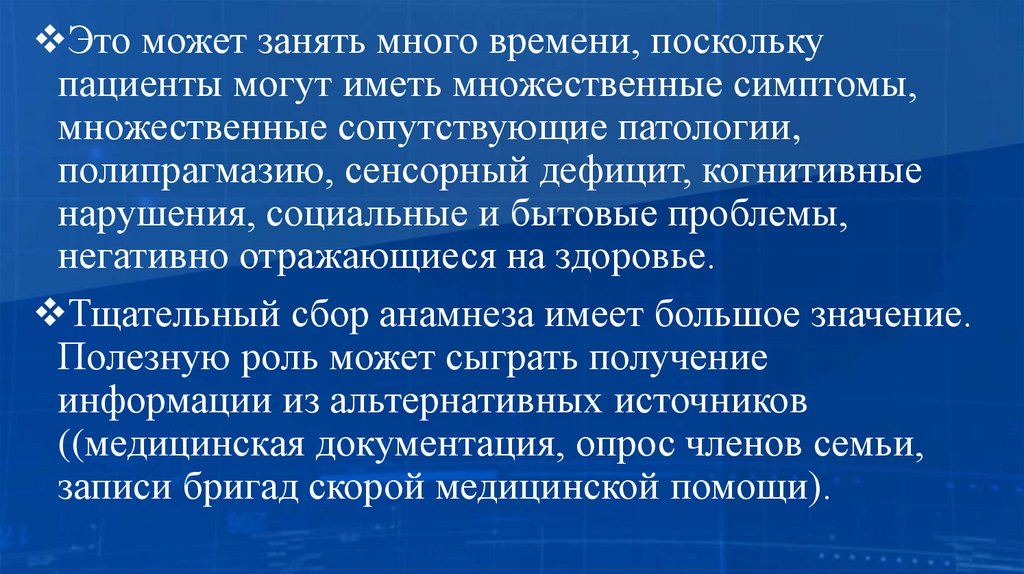 Это может занять много времени, посколькупациенты могут иметь множественные симптомы,