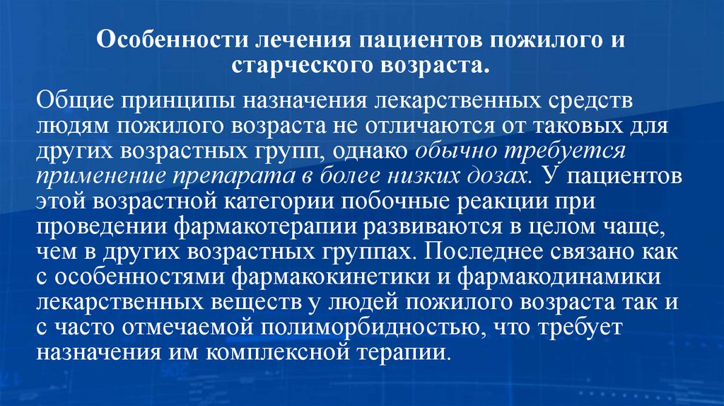 Особенности лечения пациентов пожилого истарческого возраста.