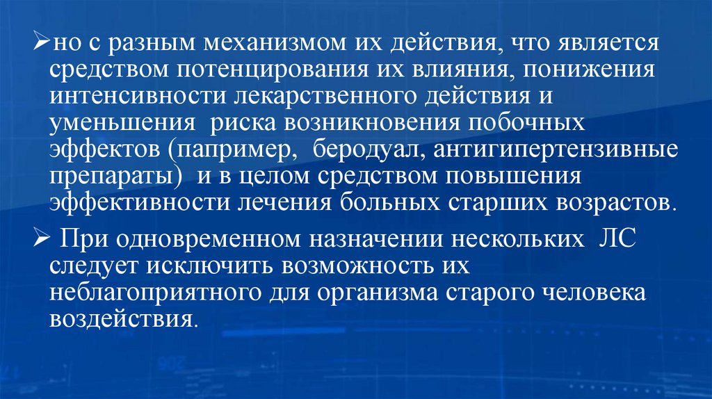 но с разным механизмом их действия, что являетсясредством потенцирования их влияния, понижения