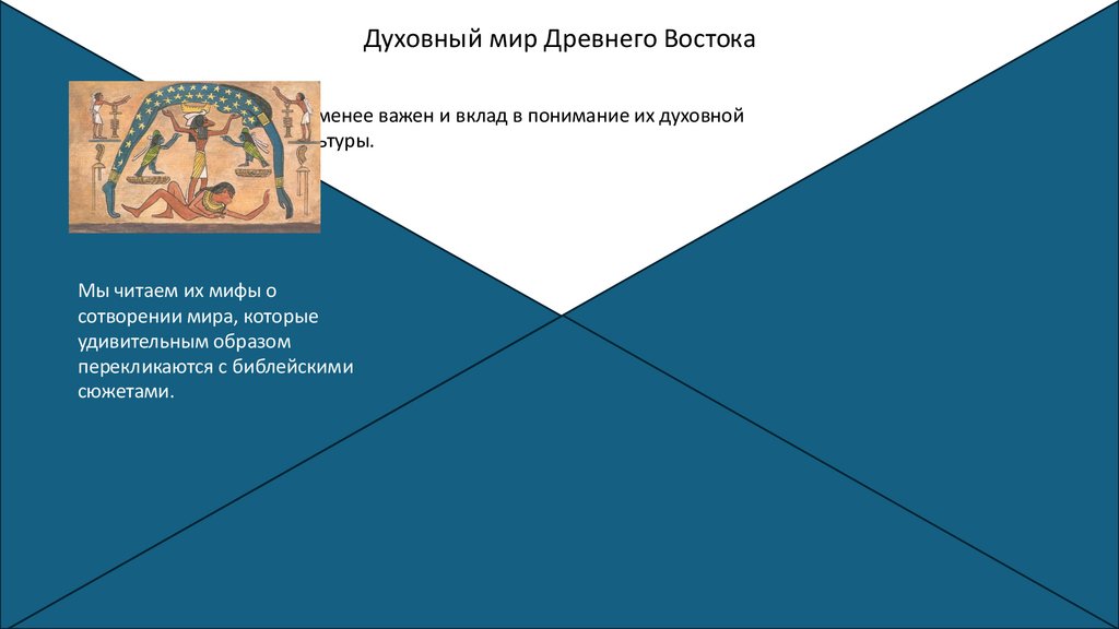 Духовный мир Древнего ВостокаНе менее важен и вклад в понимание их духовной