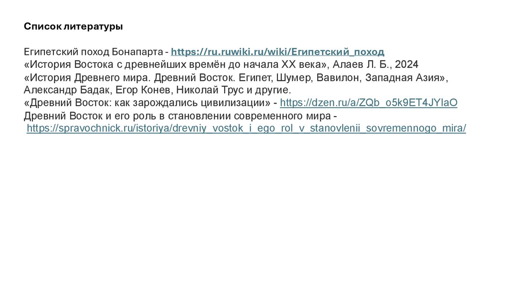 Список литературыЕгипетский поход Бонапарта - https://ru.ruwiki.ru/wiki/Египетский_поход