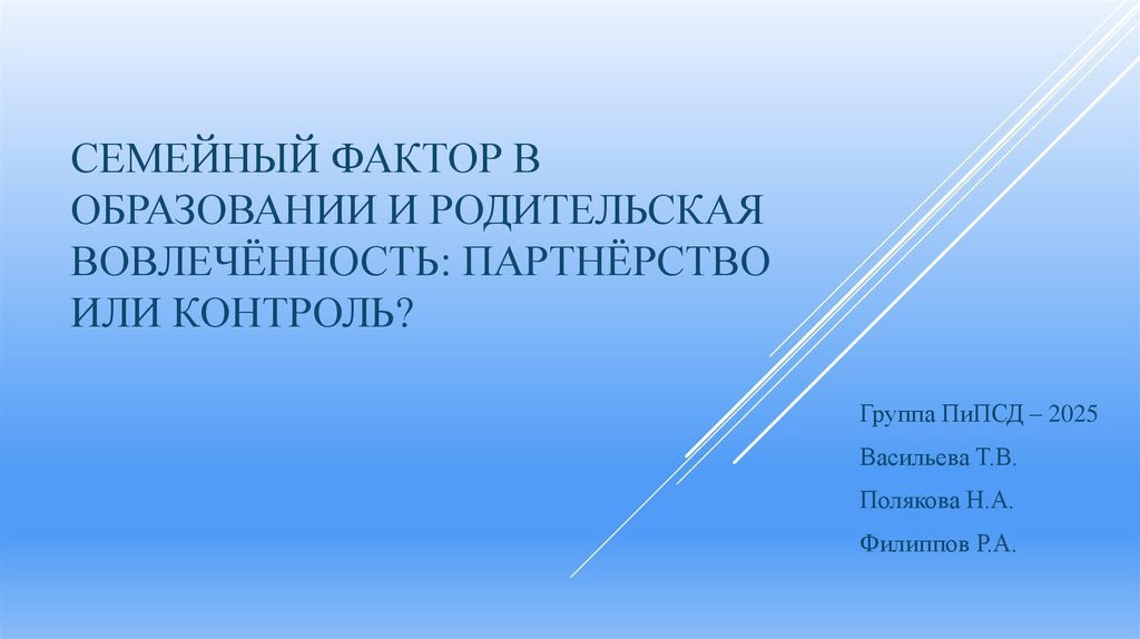 1. Семейный фактор в образовании и родительская вовлечённость: партнёрство или контроль?
