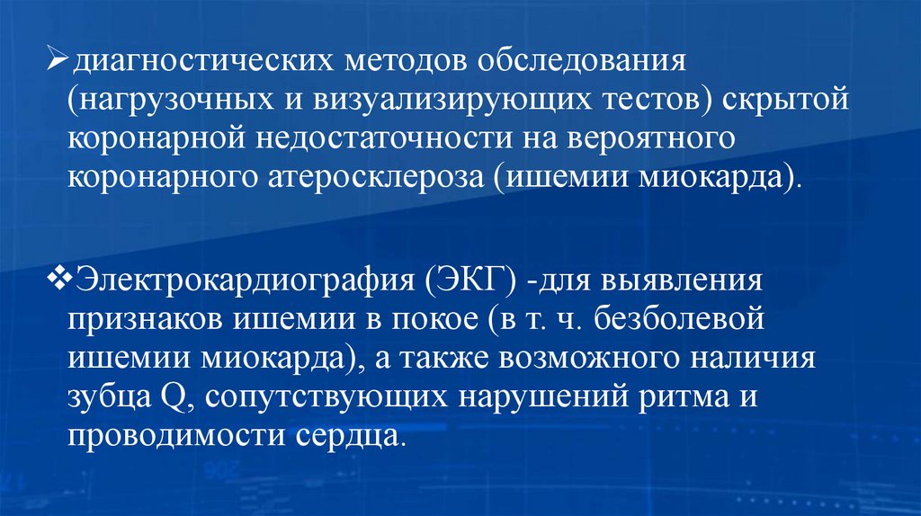 диагностических методов обследования(нагрузочных и визуализирующих тестов) скрытой