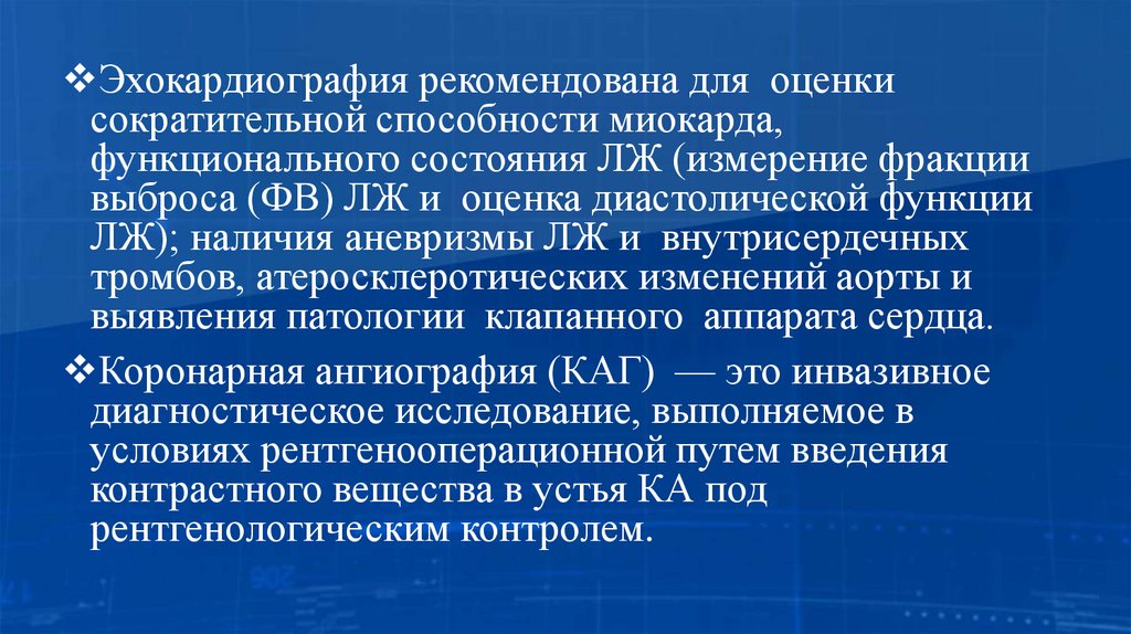 Эхокардиография рекомендована для оценкисократительной способности миокарда,
