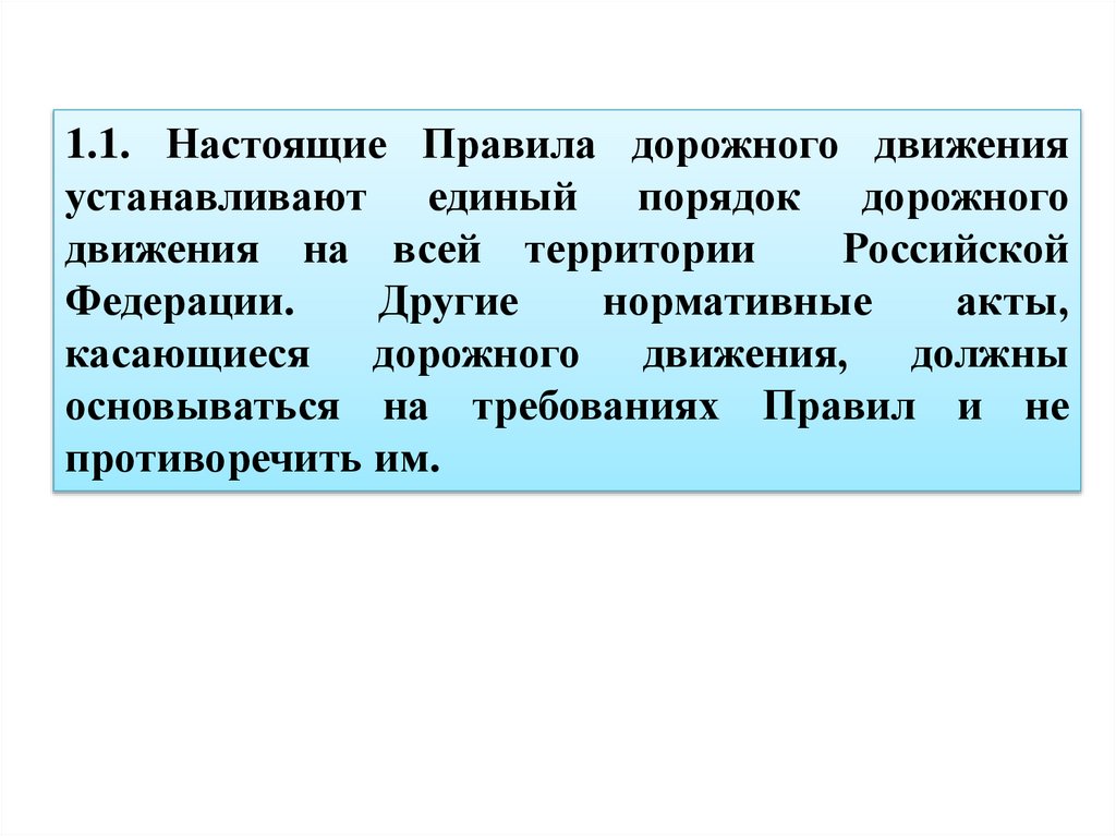 1.1. Настоящие Правила дорожного движенияустанавливают единый порядок дорожного