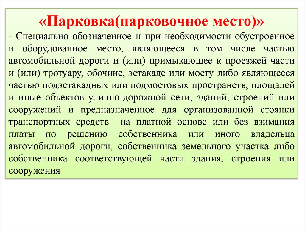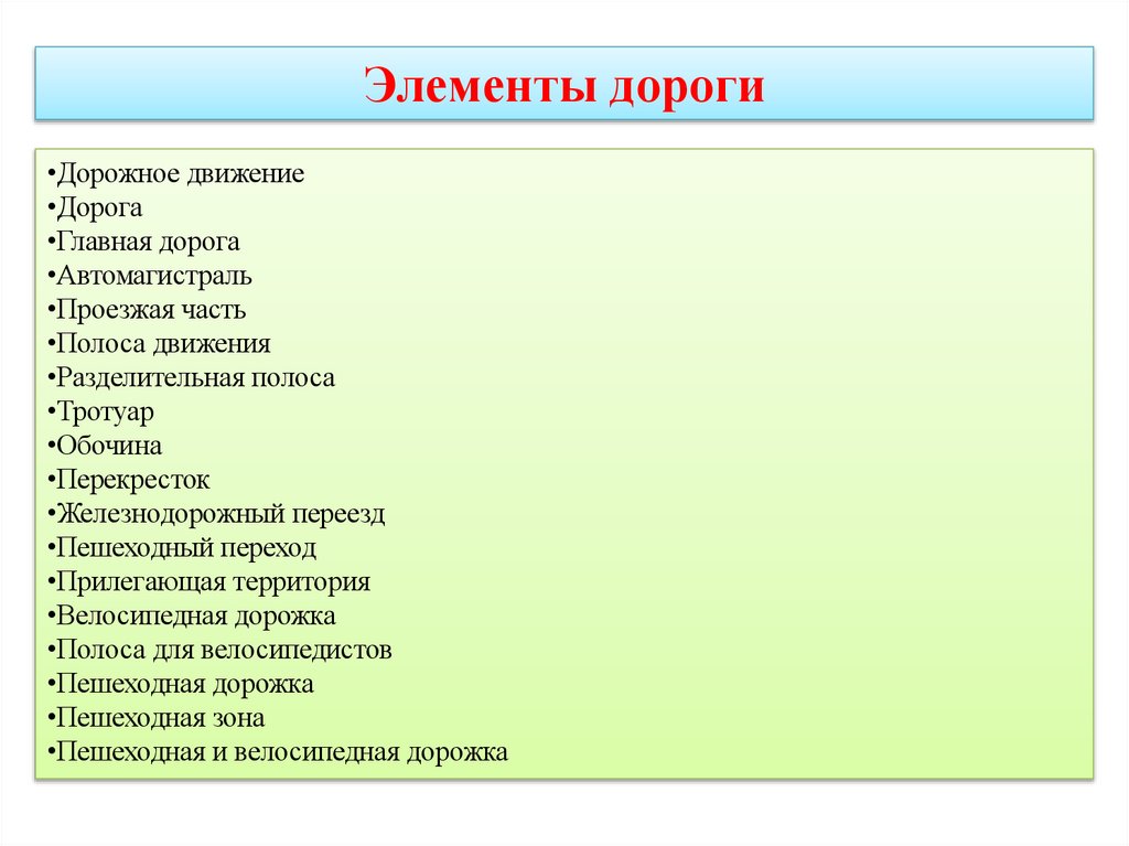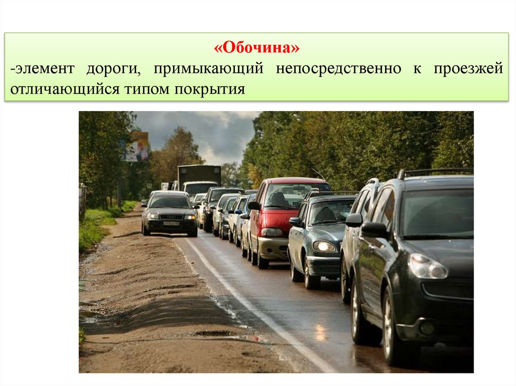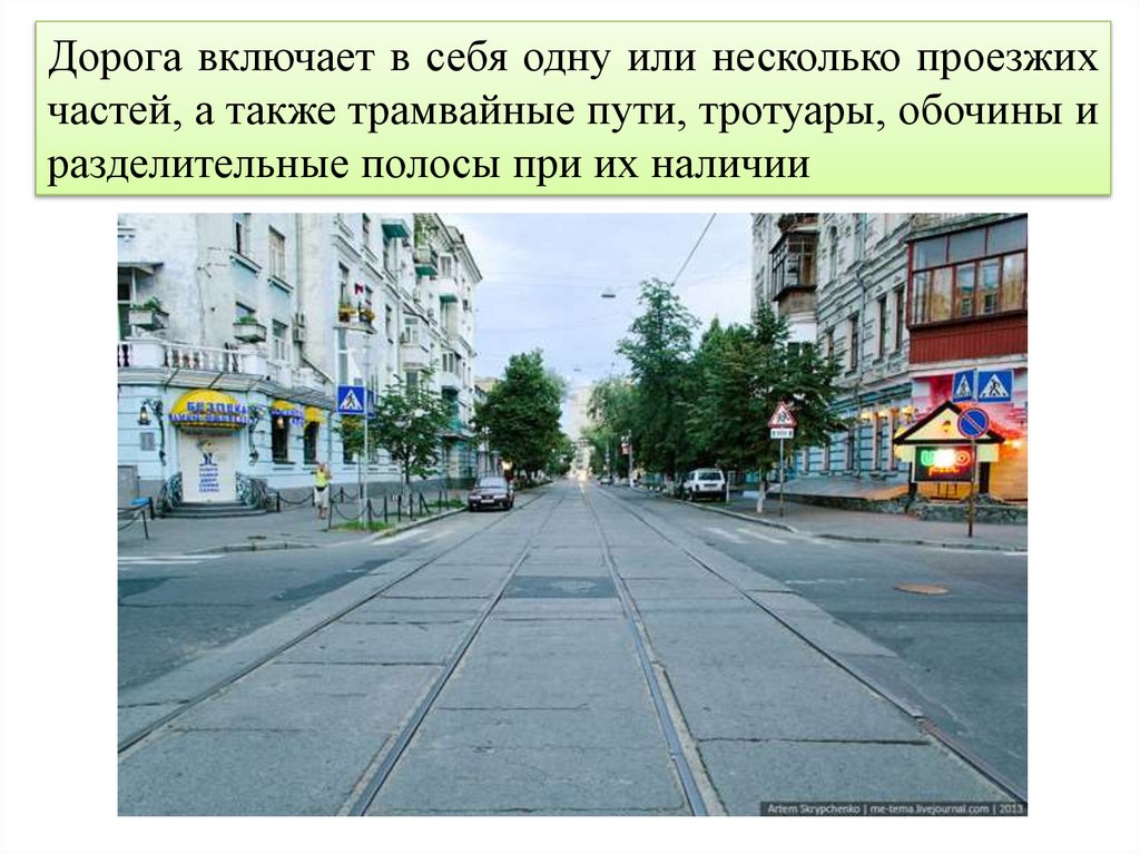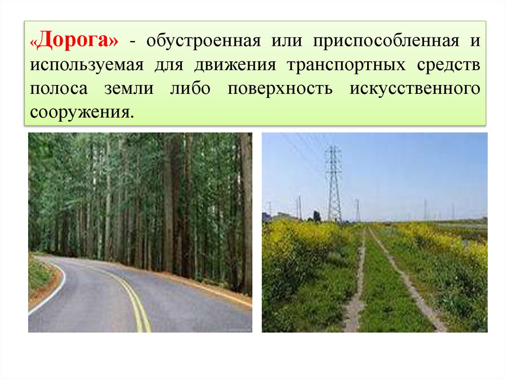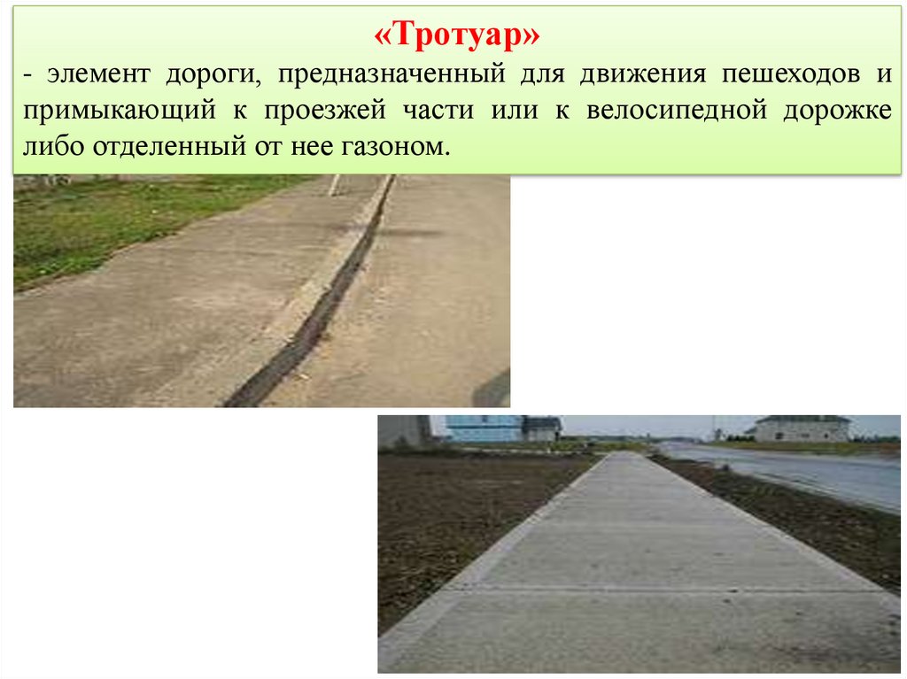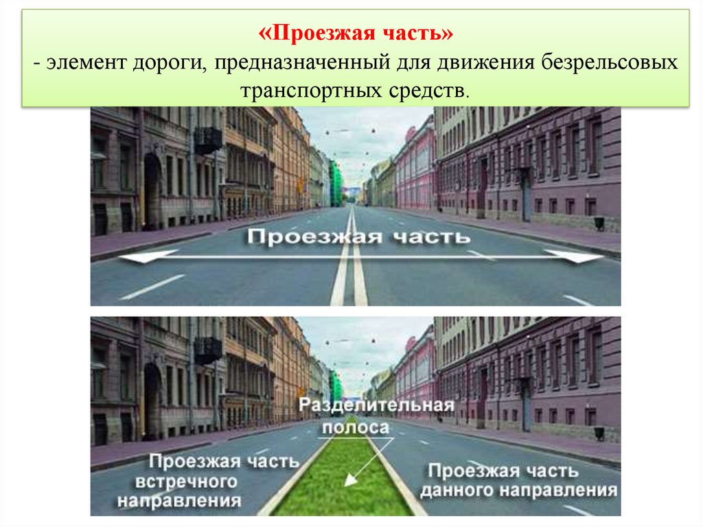 «Проезжая часть»- элемент дороги, предназначенный для движения безрельсовых