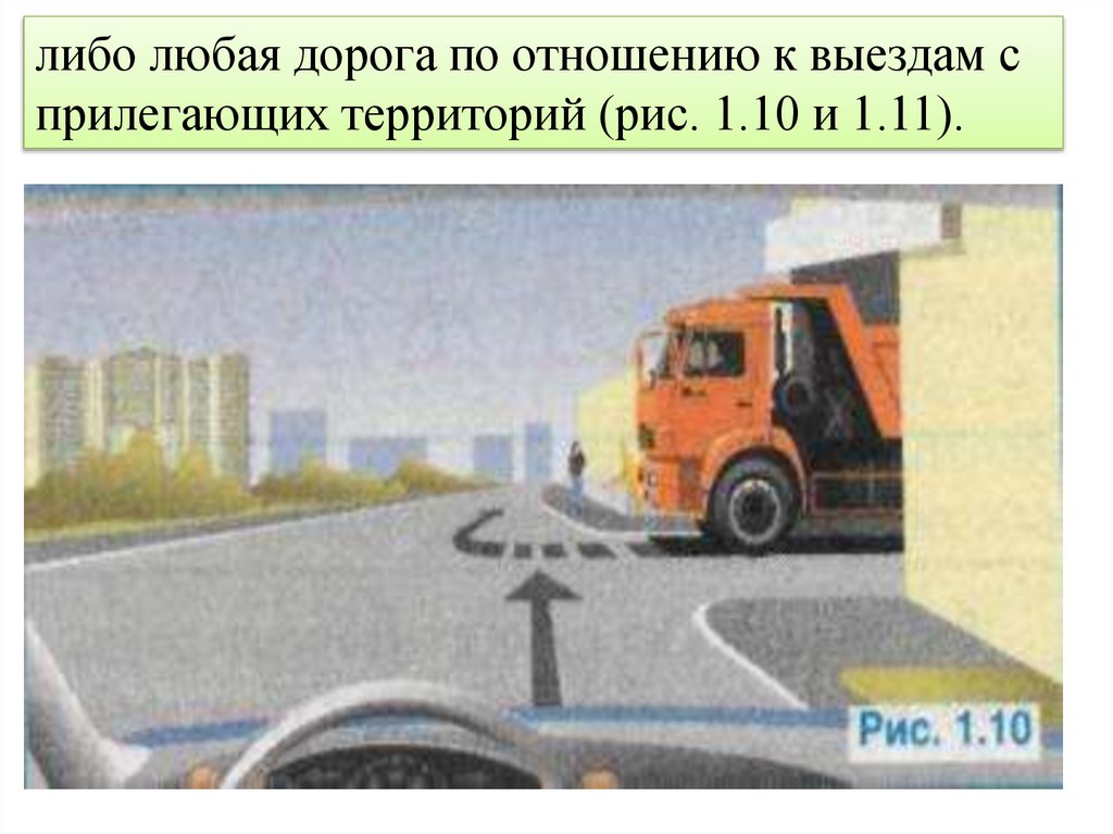 либо любая дорога по отношению к выездам сприлегающих территорий (рис. 1.10 и 1.11).