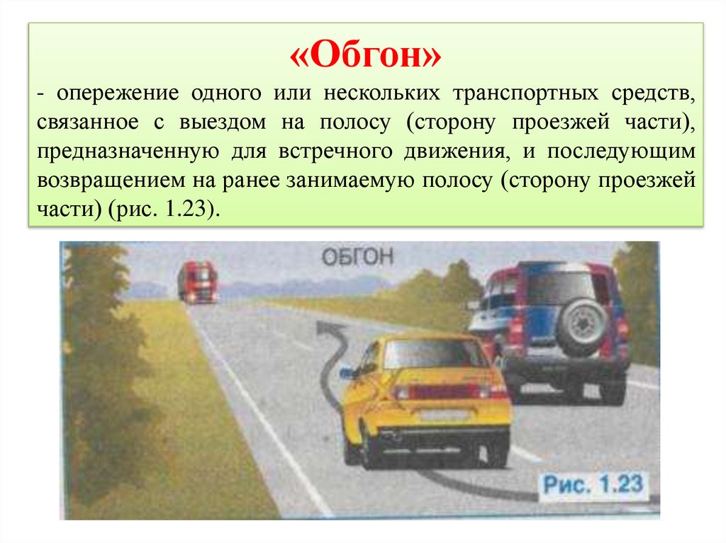 «Обгон»- опережение одного или нескольких транспортных средств,