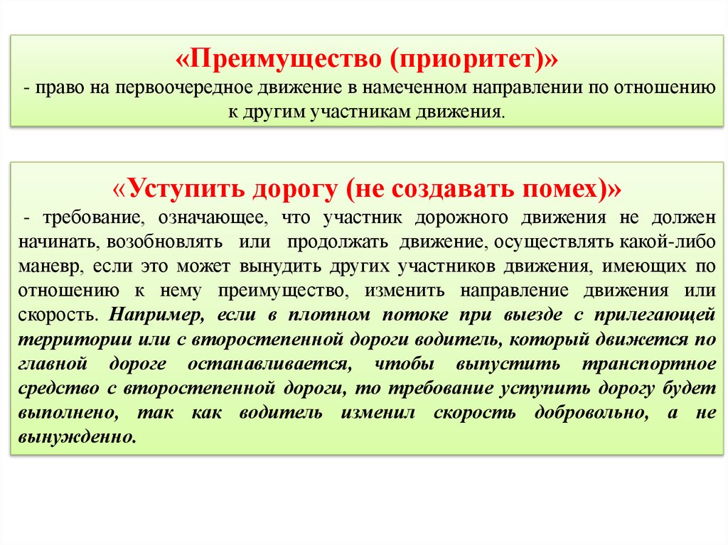 «Преимущество (приоритет)»- право на первоочередное движение в намеченном направлении по отношению