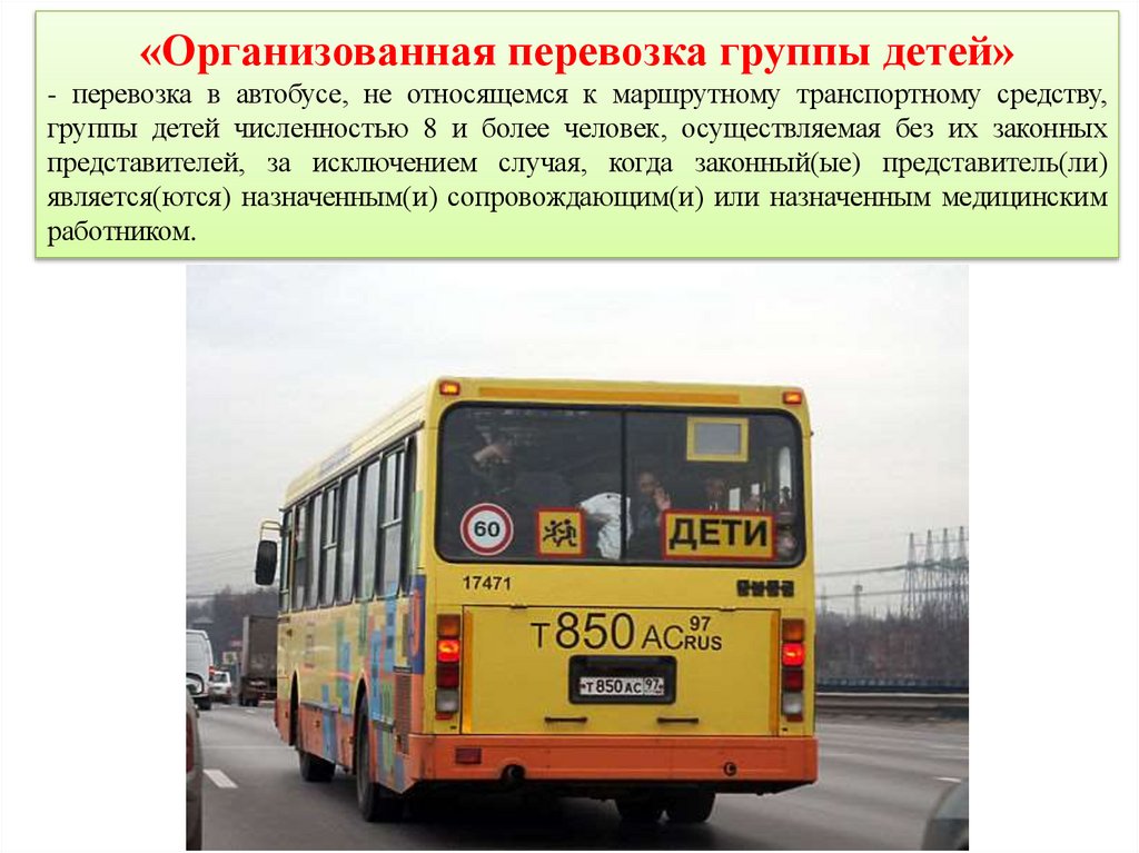 «Организованная перевозка группы детей»- перевозка в автобусе, не относящемся к маршрутному транспортному средству,