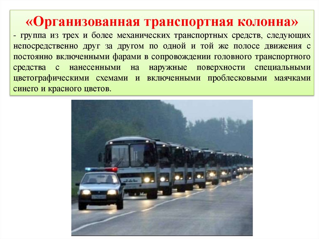 «Организованная транспортная колонна»- группа из трех и более механических транспортных средств, следующих