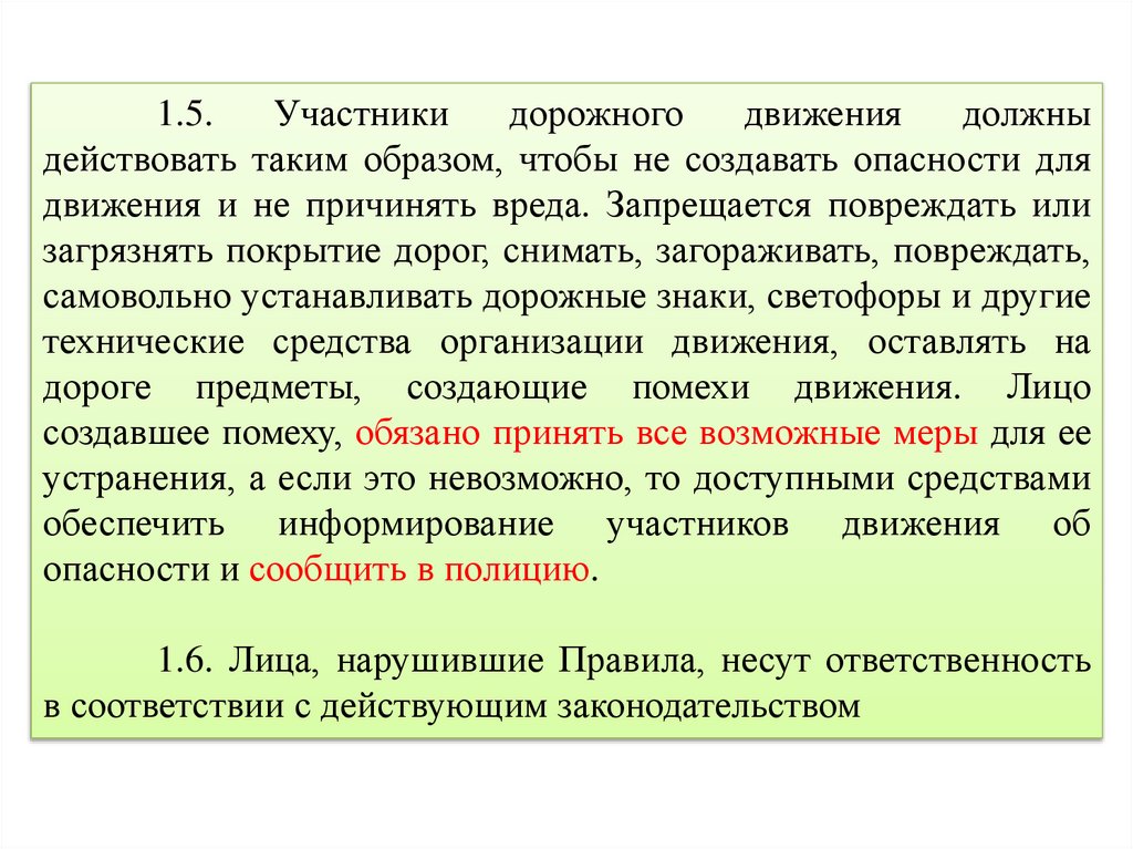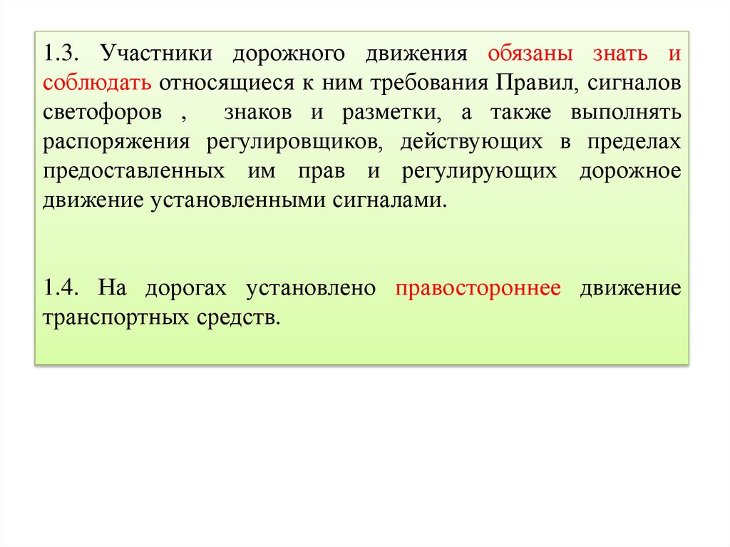 1.3. Участники дорожного движения обязаны знать исоблюдать относящиеся к ним требования Правил, сигналов