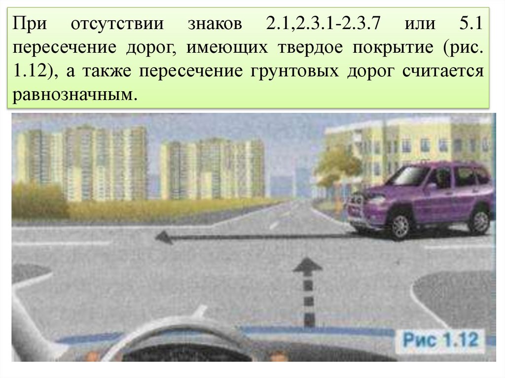 При отсутствии знаков 2.1,2.3.1-2.3.7 или 5.1пересечение дорог, имеющих твердое покрытие (рис.