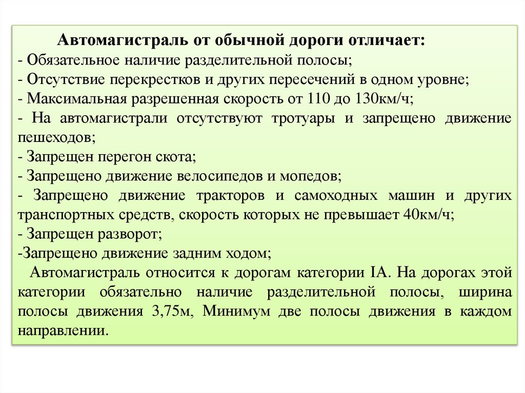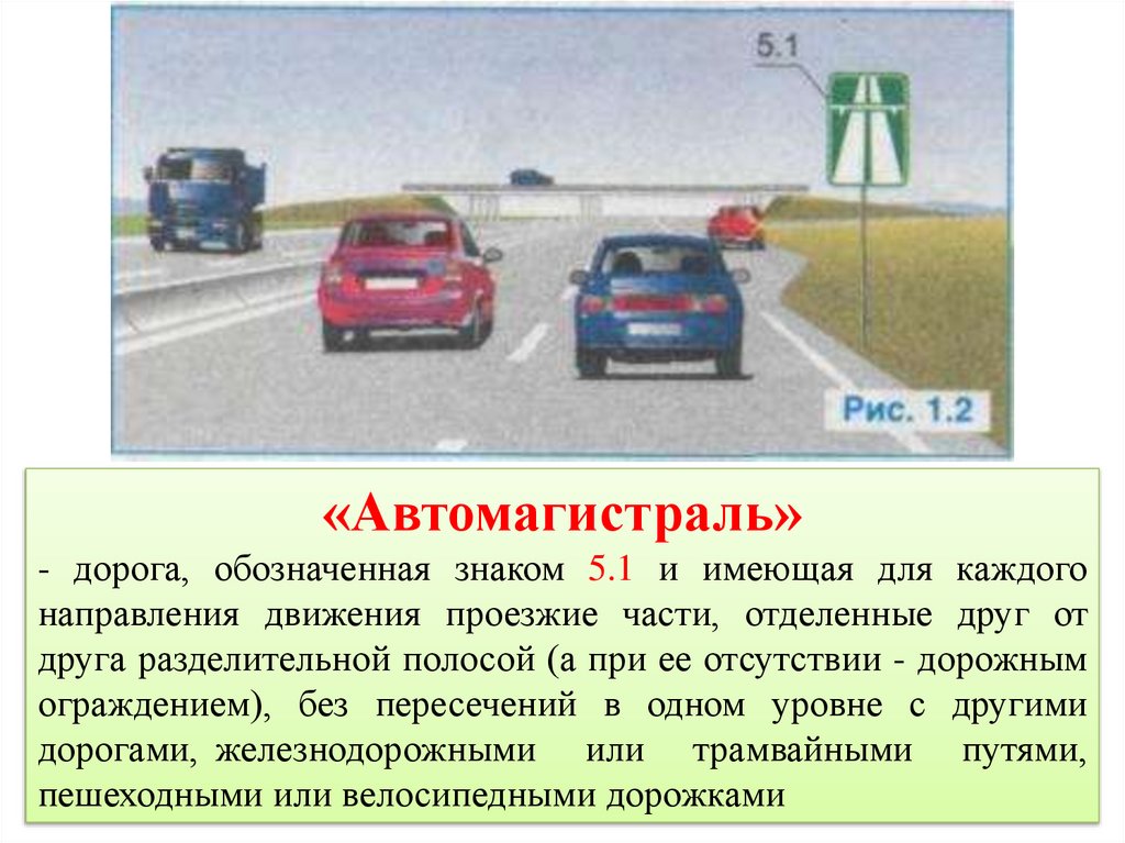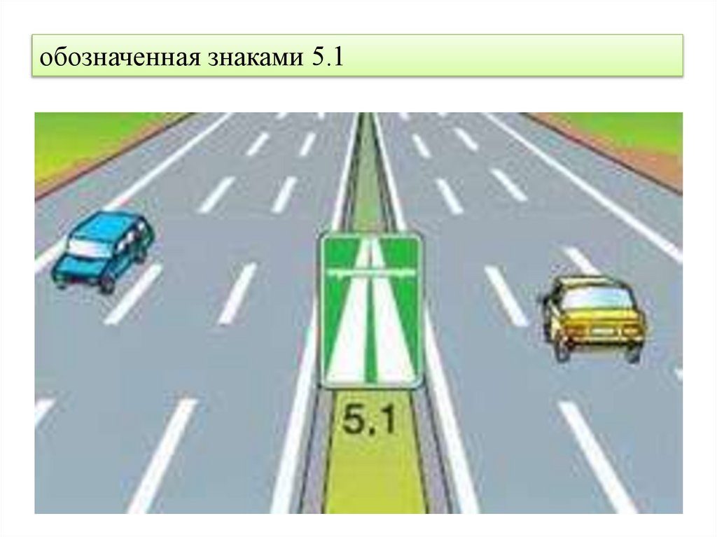 «Автомагистраль»- дорога, обозначенная знаком 5.1 и имеющая для каждого