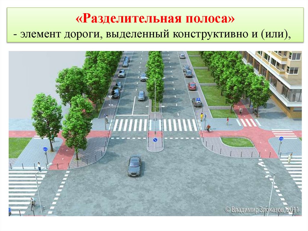 «Разделительная полоса»- элемент дороги, выделенный конструктивно и (или),