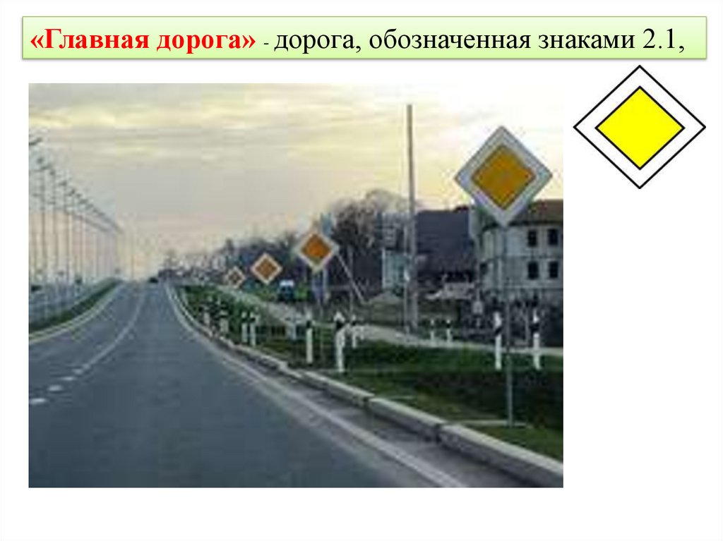 «Главная дорога» - дорога, обозначенная знаками 2.1,8.