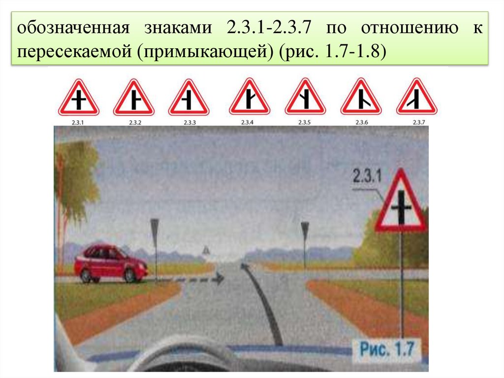 обозначенная знаками 2.3.1-2.3.7 по отношению кпересекаемой (примыкающей) (рис. 1.7-1.8)
