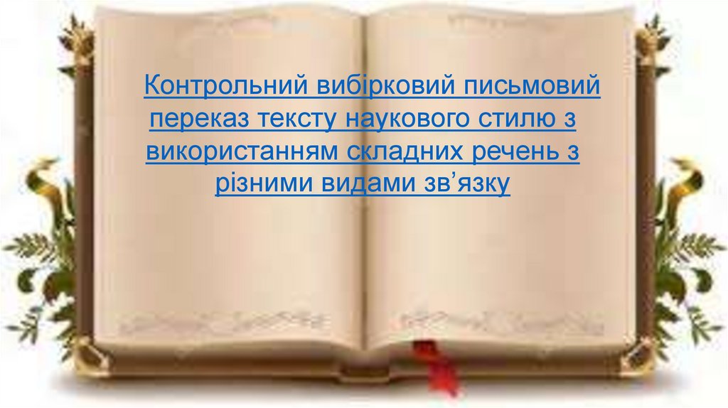 Контрольний вибірковий письмовийпереказ тексту наукового стилю з