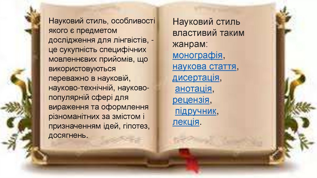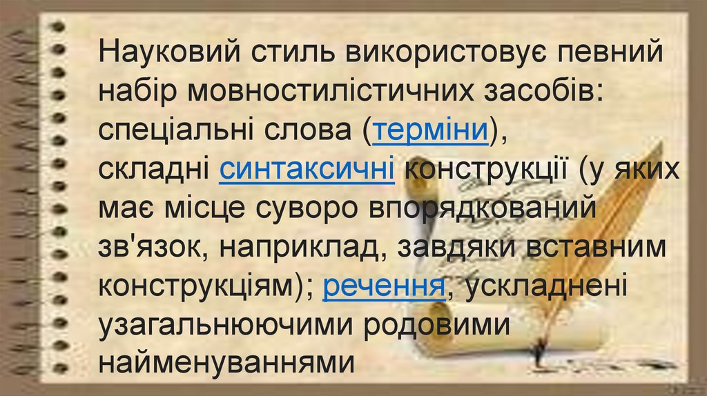 Науковий стиль використовує певнийнабір мовностилістичних засобів:
