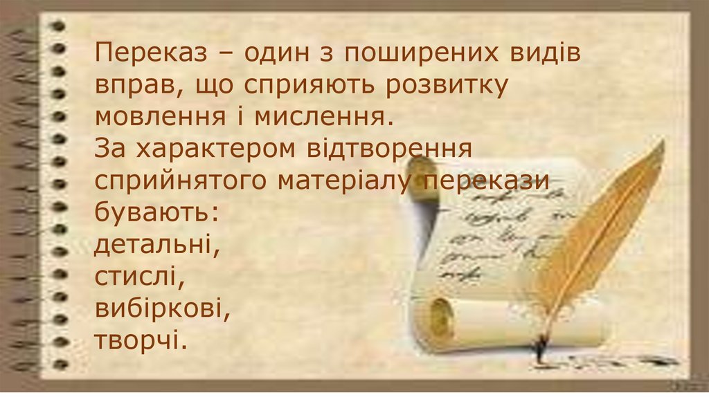 Переказ – один з поширених видіввправ, що сприяють розвитку