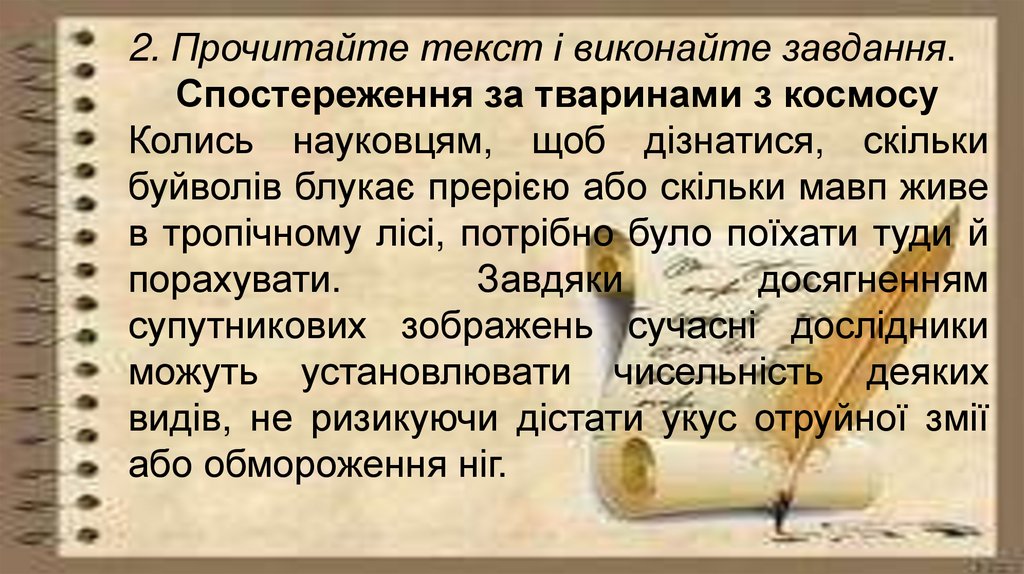 2. Прочитайте текст і виконайте завдання.Спостереження за тваринами з космосу