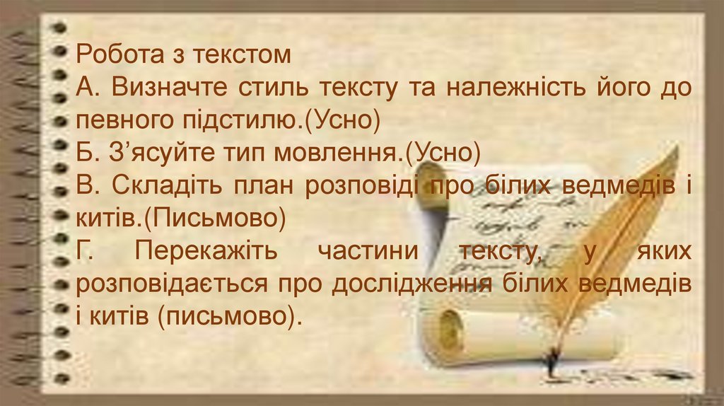 Робота з текстомA. Визначте стиль тексту та належність його до