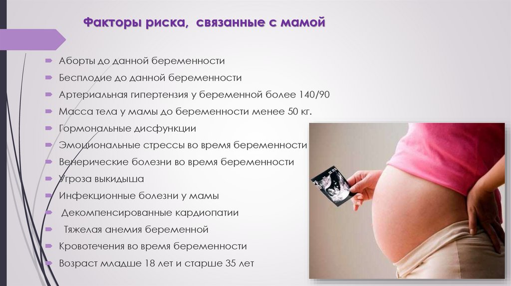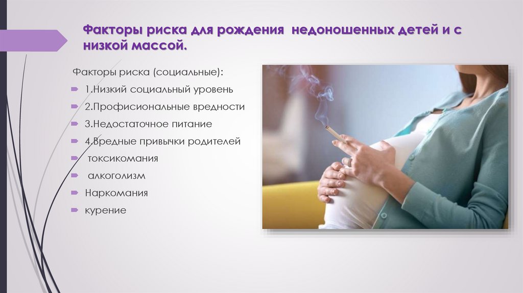 Факторы риска для рождения недоношенных детей и снизкой массой.