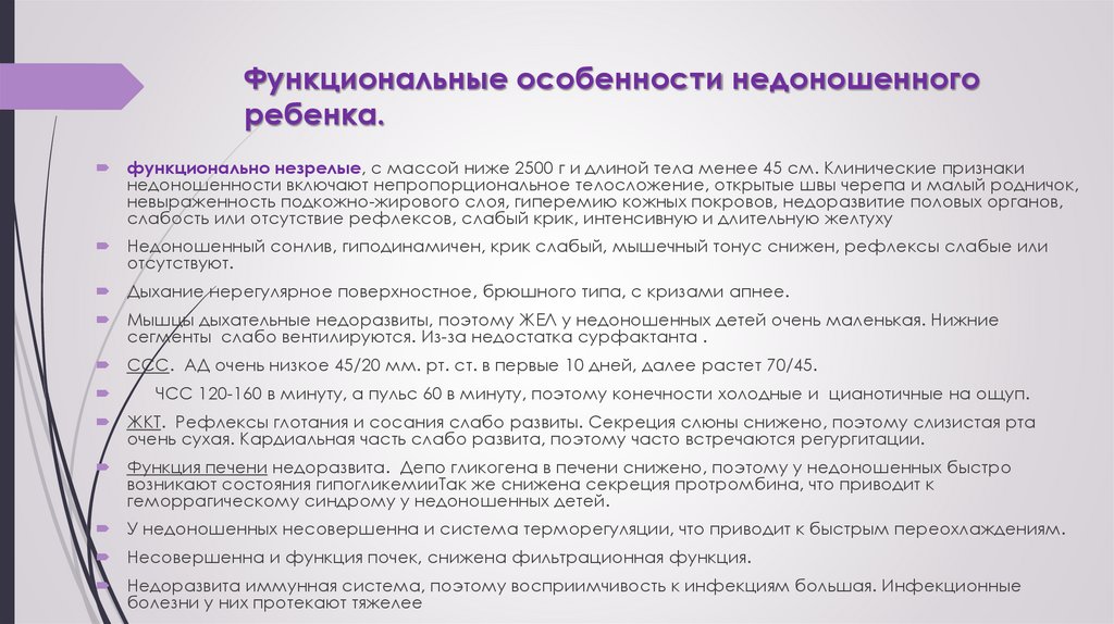 органы малыша не до конца сформированы, его питание также производится по