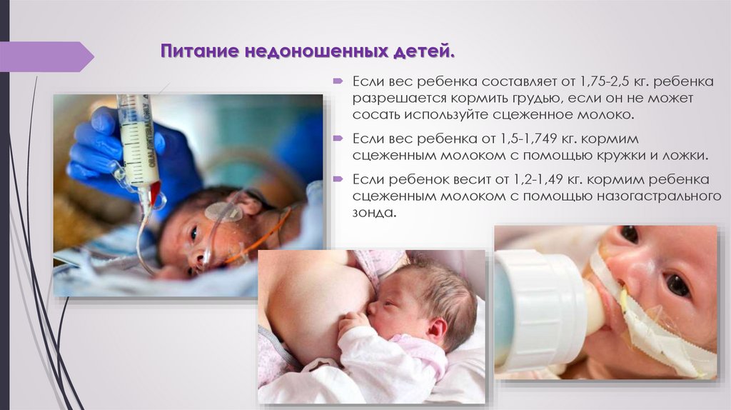 Питание недоношенных детей.Если вес ребенка составляет от 1,75-2,5 кг. ребенка