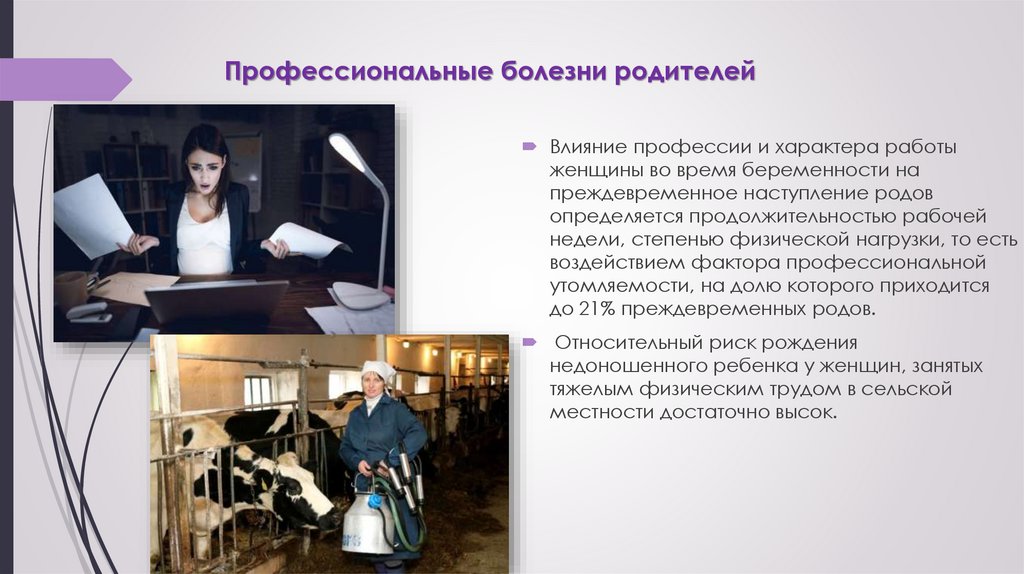 Профессиональные болезни родителейВлияние профессии и характера работы