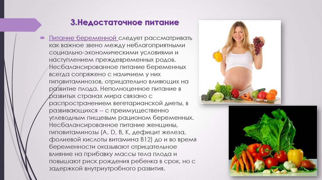 3.Недостаточное питаниеПитание беременной следует рассматривать