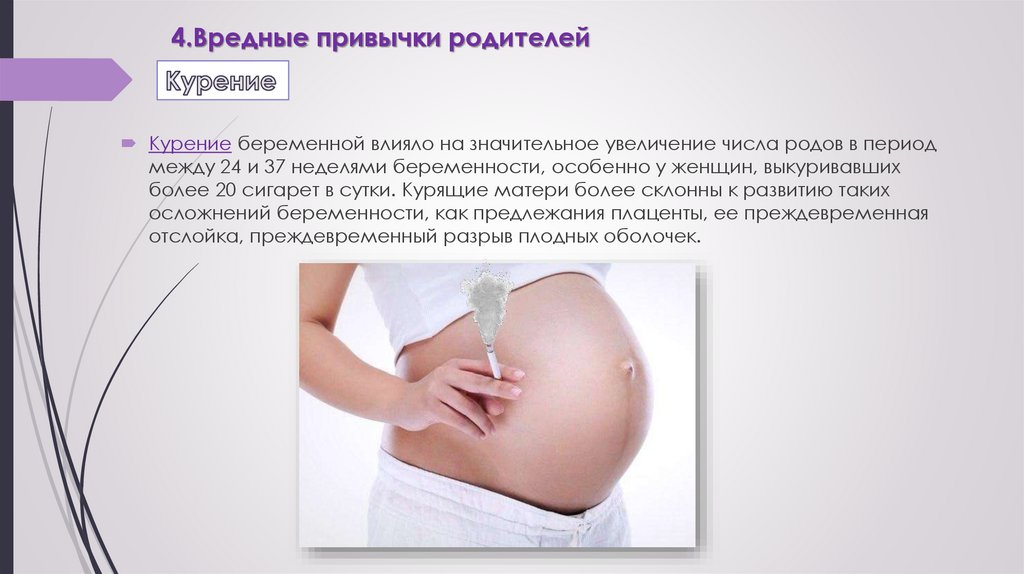 4.Вредные привычки родителейКурение беременной влияло на значительное увеличение числа родов в период