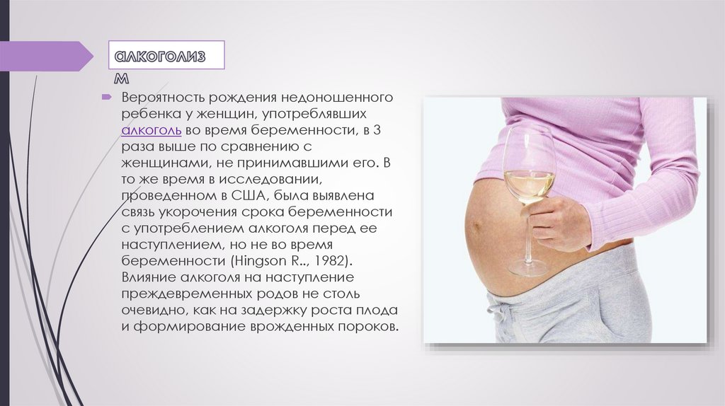 Вероятность рождения недоношенногоребенка у женщин, употреблявших