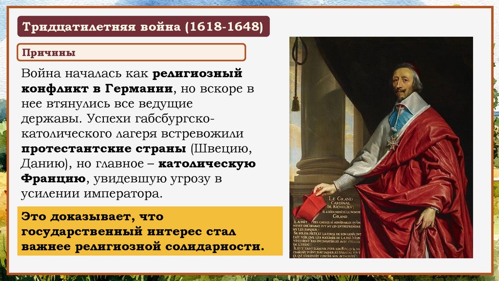чтобы ослабить главного соперника Франции католического императора Габсбургов.