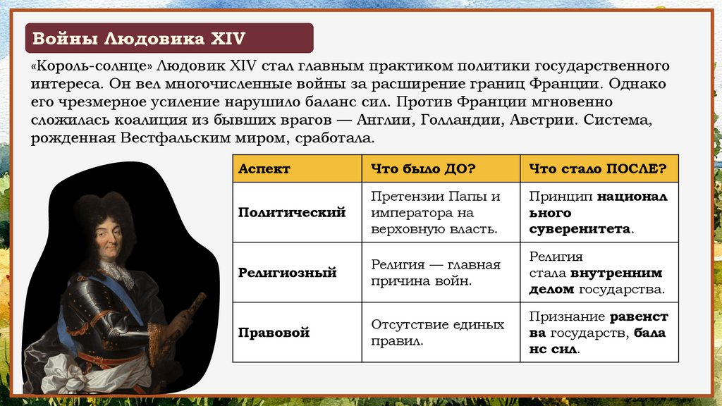Войны Людовика XIV«Король-солнце» Людовик XIV стал главным практиком политики государственного