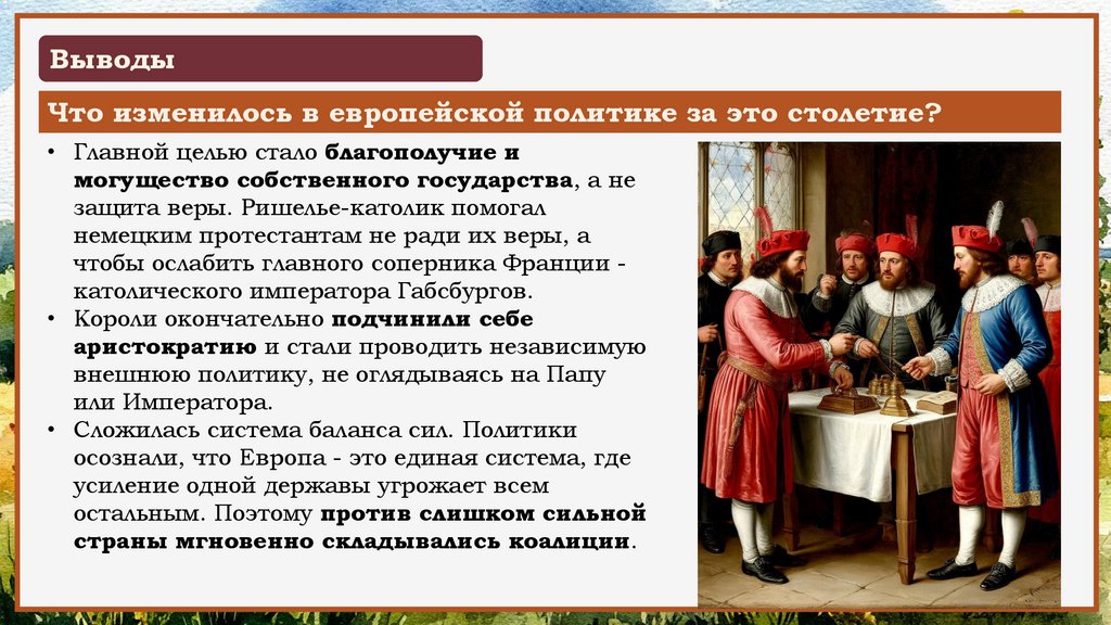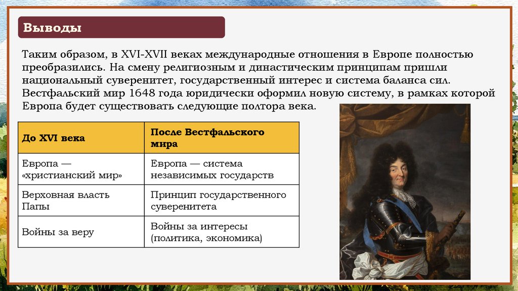 ВыводыТаким образом, в XVI-XVII веках международные отношения в Европе полностью