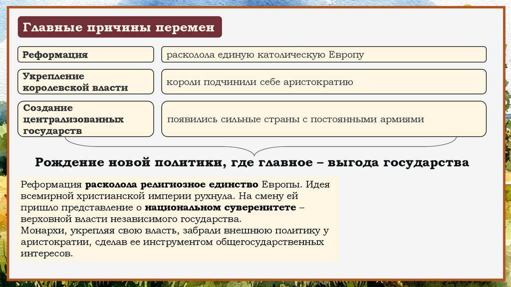 Главные причины переменРеформация