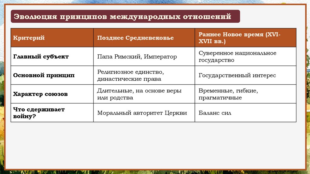 Эволюция принципов международных отношенийКритерий