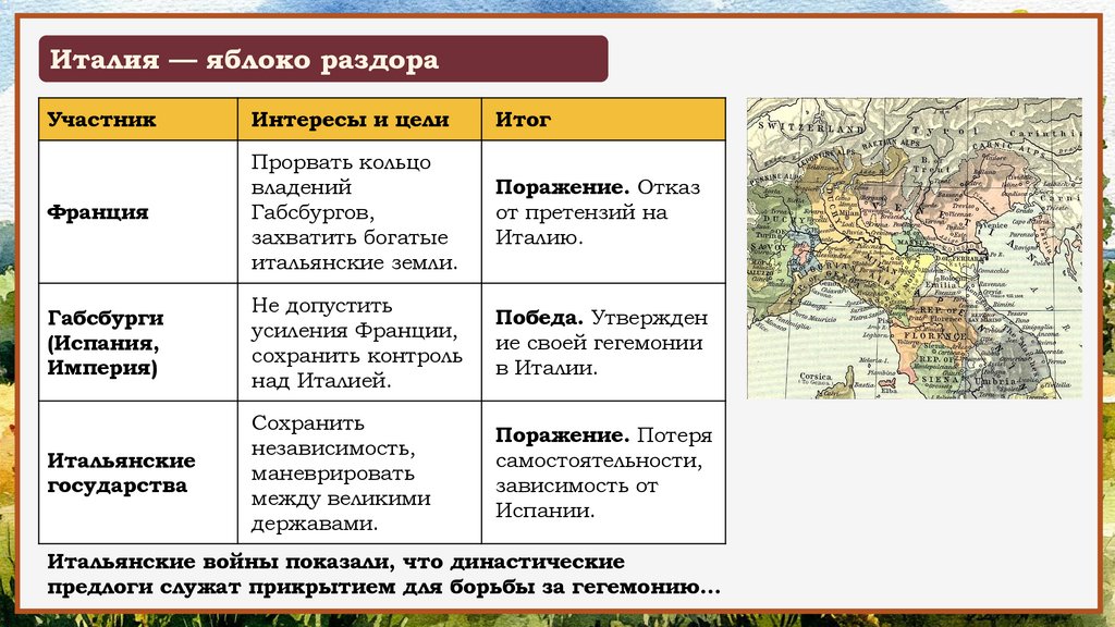 раздробленной Италии. Несмотря на
